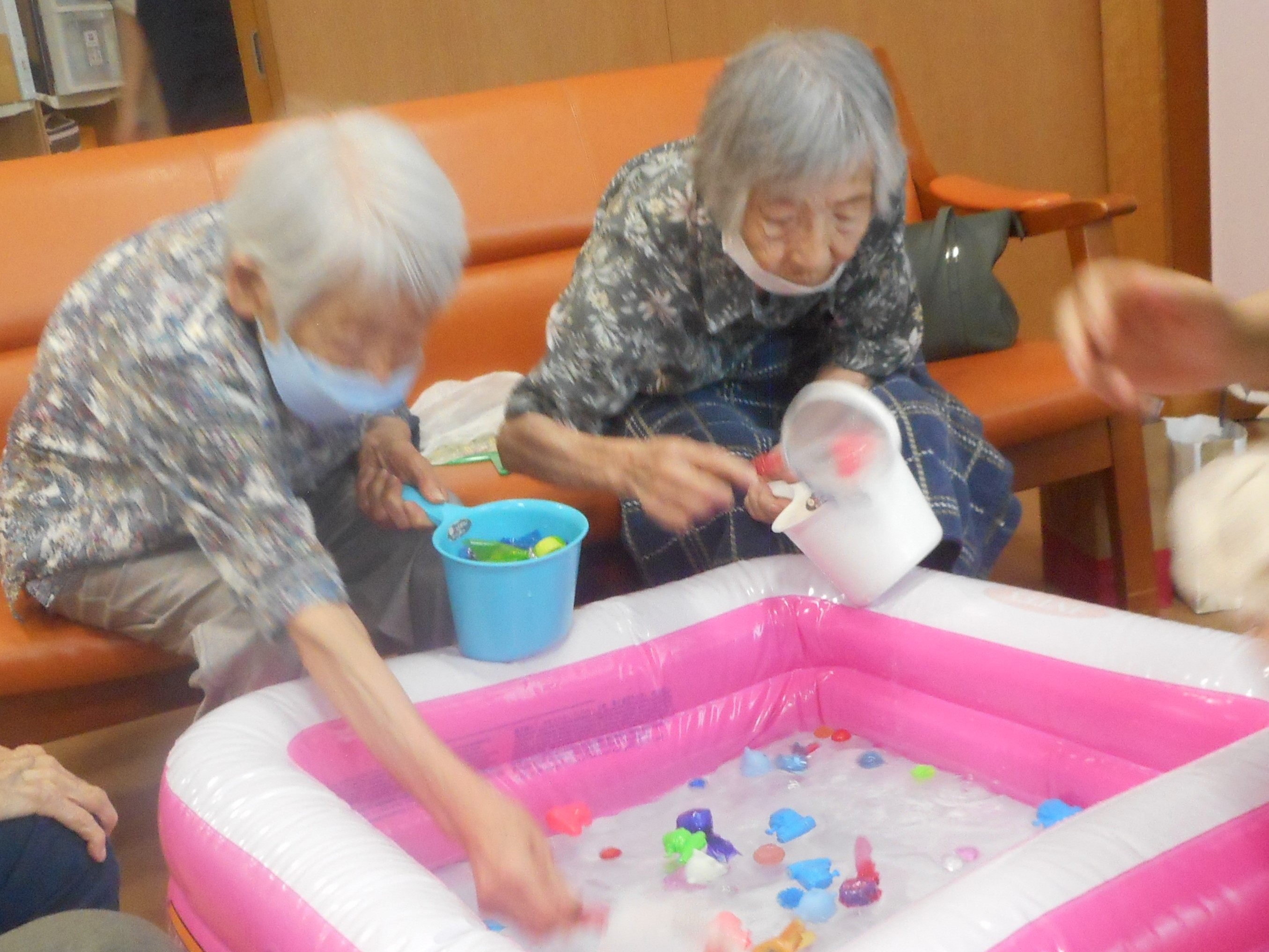 ミニ夏祭りでは、かき氷、射的、スーパーボールすくいの3つのコーナーを利用者様がグループに分かれて楽しまれました。