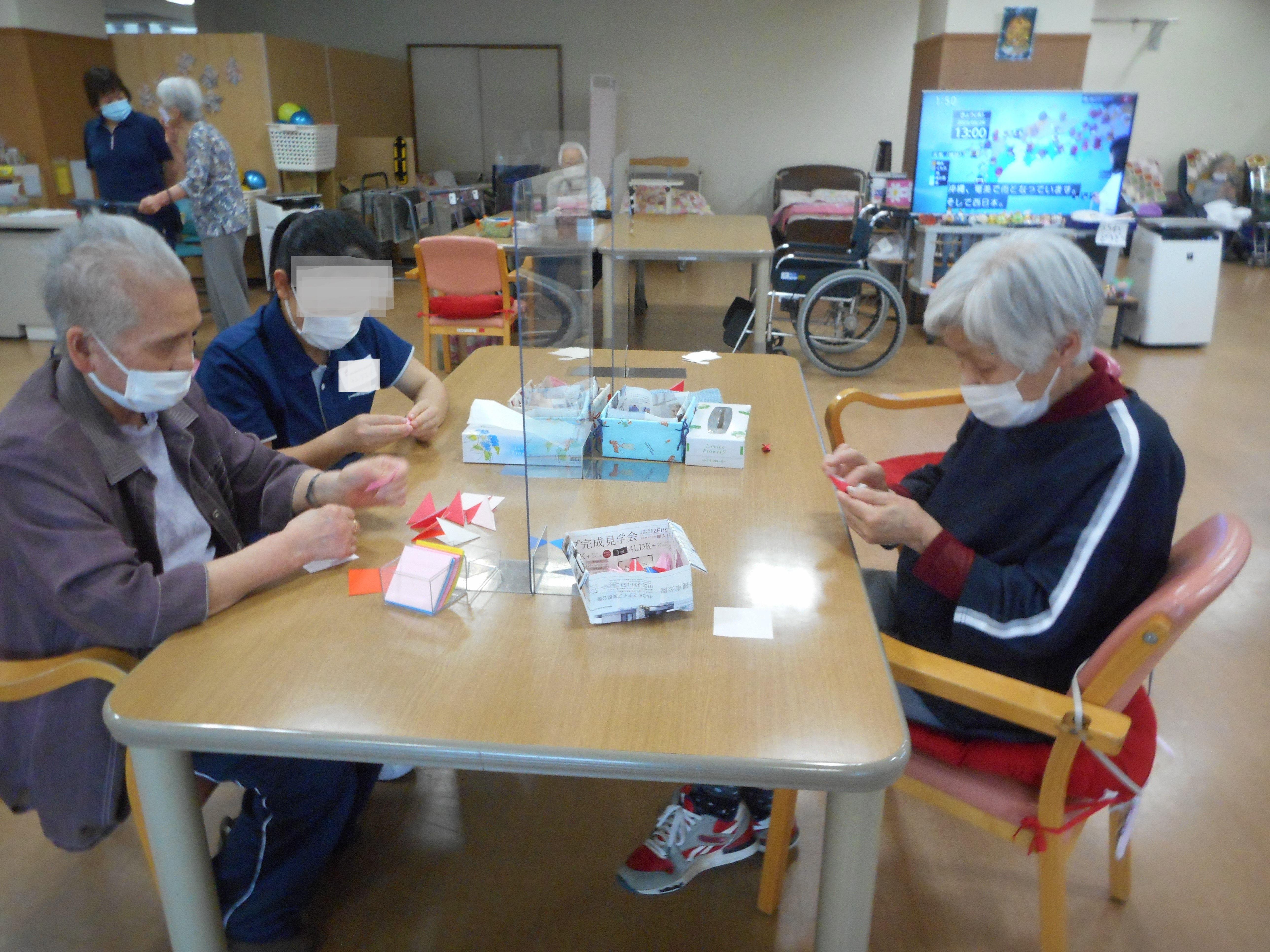 鶴を折る細かい作業は「見えにくい」と言いながらも一生懸命折ってくださいました。