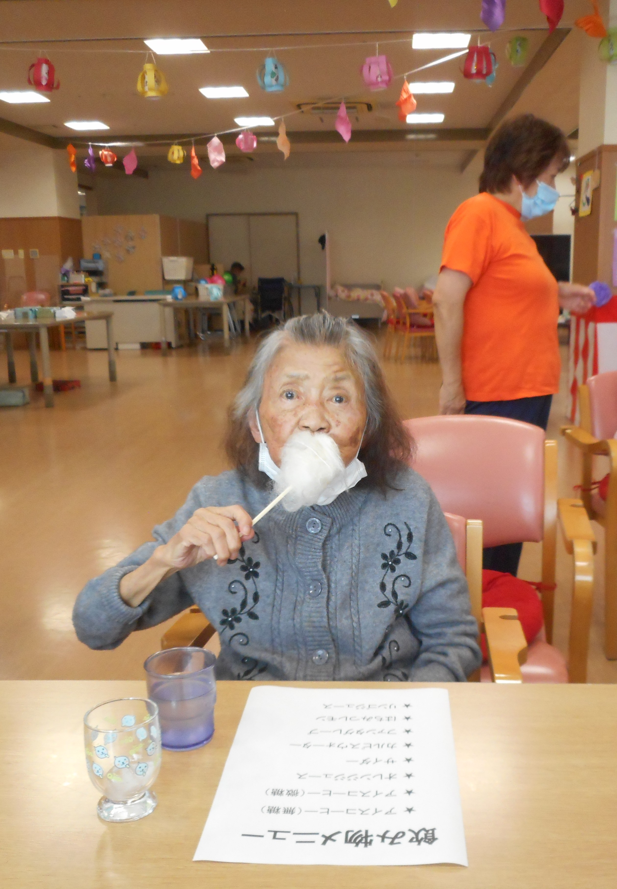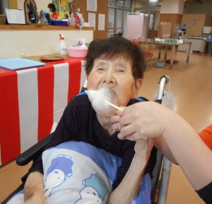 「何年ぶりやろ」と言いながら、かわいいサイズの綿菓子を手でちぎって食べ、笑顔が見られていました(^o^)
