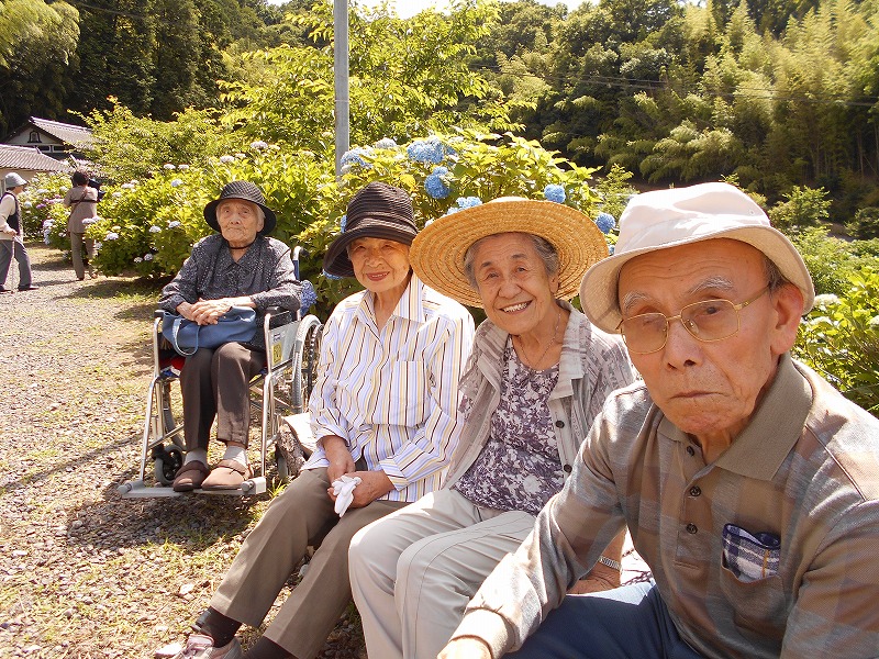 梅雨真っただ中の6月11日~15日、法寿苑デイサービスセンターをご利用の皆様で、機能訓練(歩行)と気分転換を兼ねて、あじさいの花を見に出かけました。
