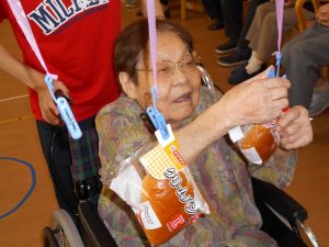デイサービスの利用者様には、運動が苦手な方もいらっしゃいますが、機能訓練も兼ね、団体の中で楽しい雰囲気を作ることで無理なく参加していただくのも開催目的の一つです。