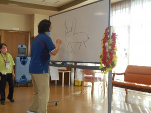 スタッフが絵を描き、利用者様に当ててもらいます。すぐに当ててくれる上手な絵や・・・