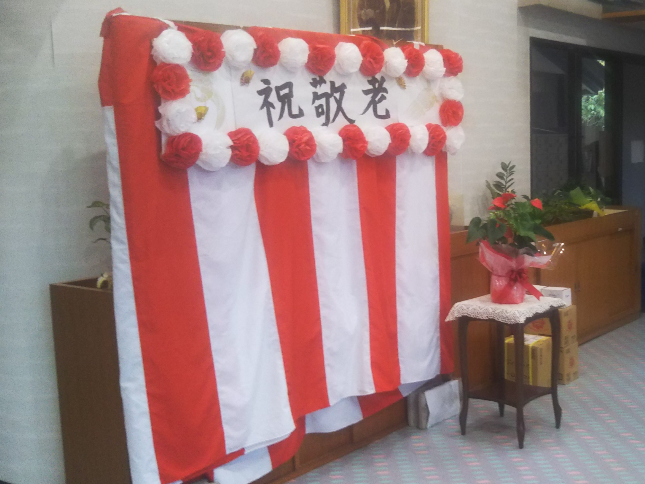 「敬老の日の1週間後くらいまで置いといて皆で記念撮影に使ってもらうんよ。」と生活相談員。