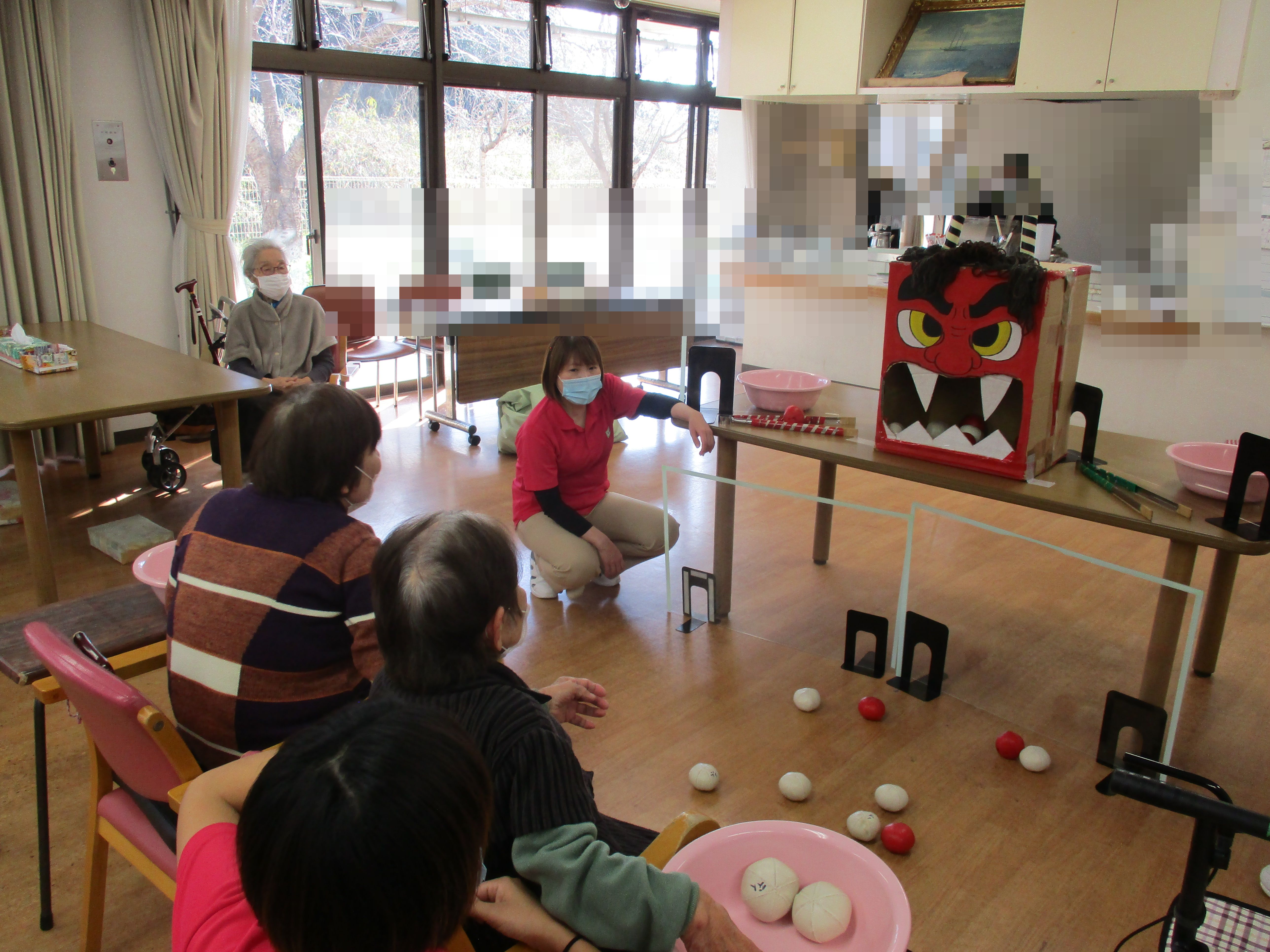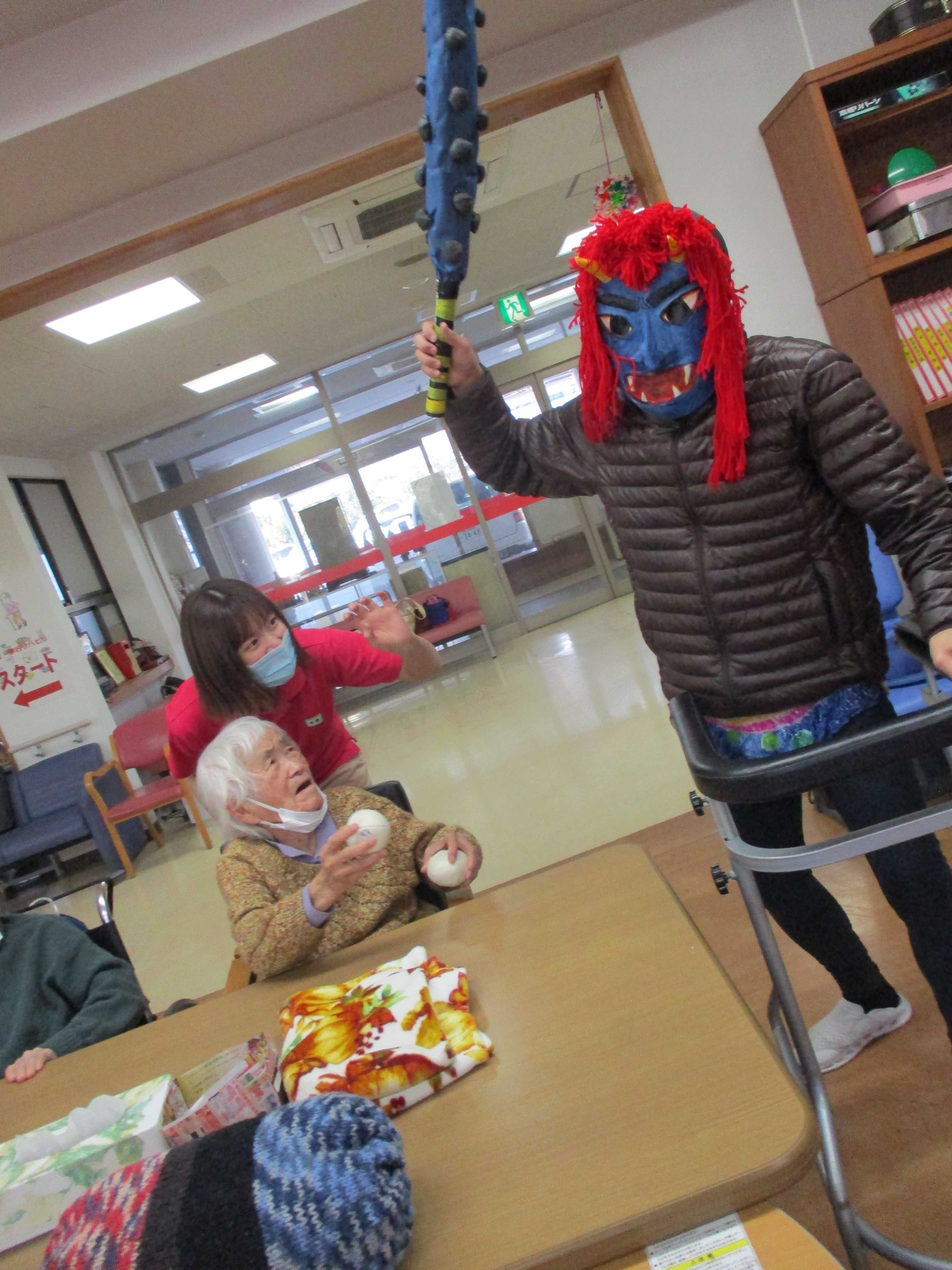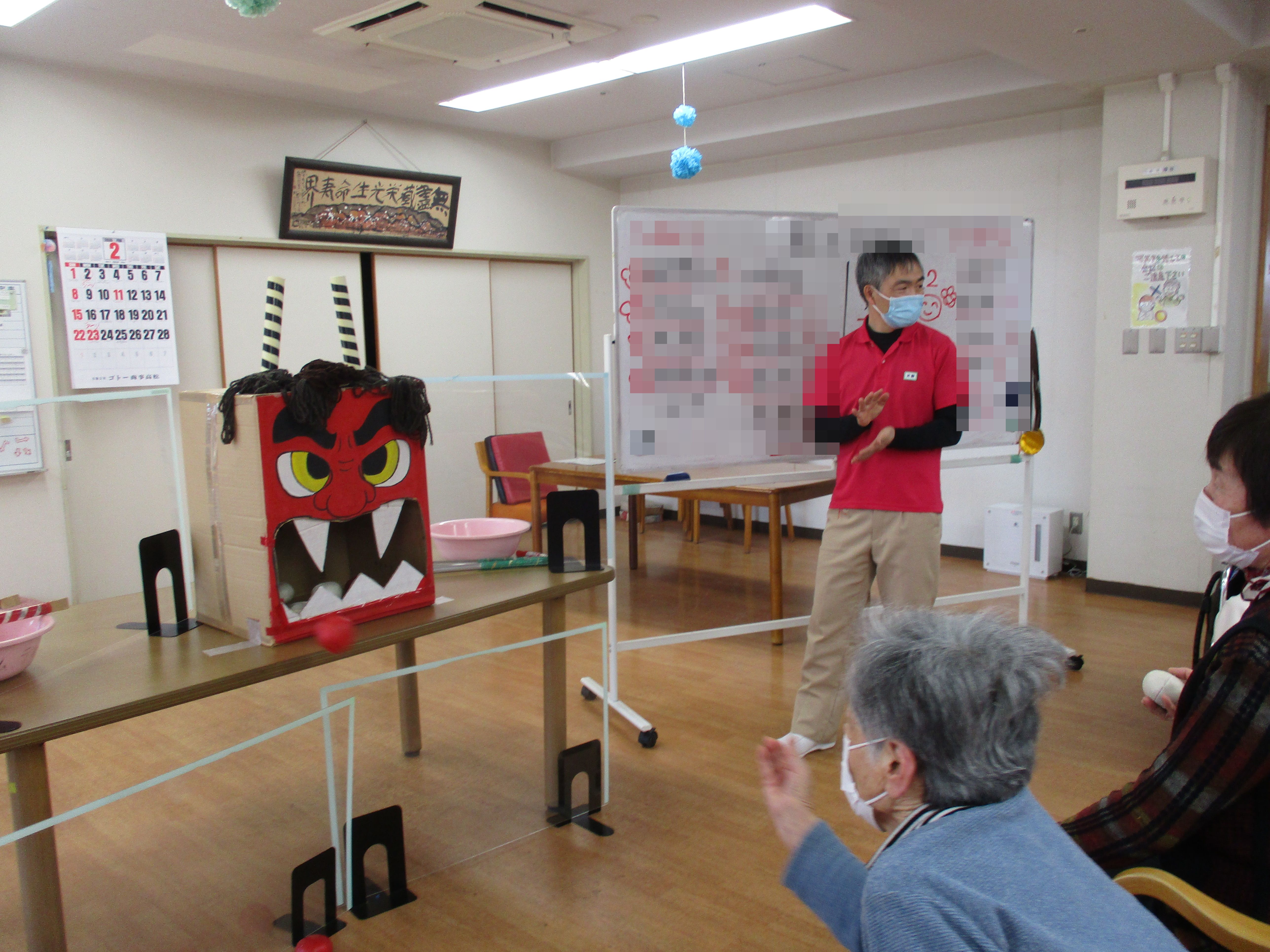 豆まきゲームで皆さんハッスルタイムです(笑)