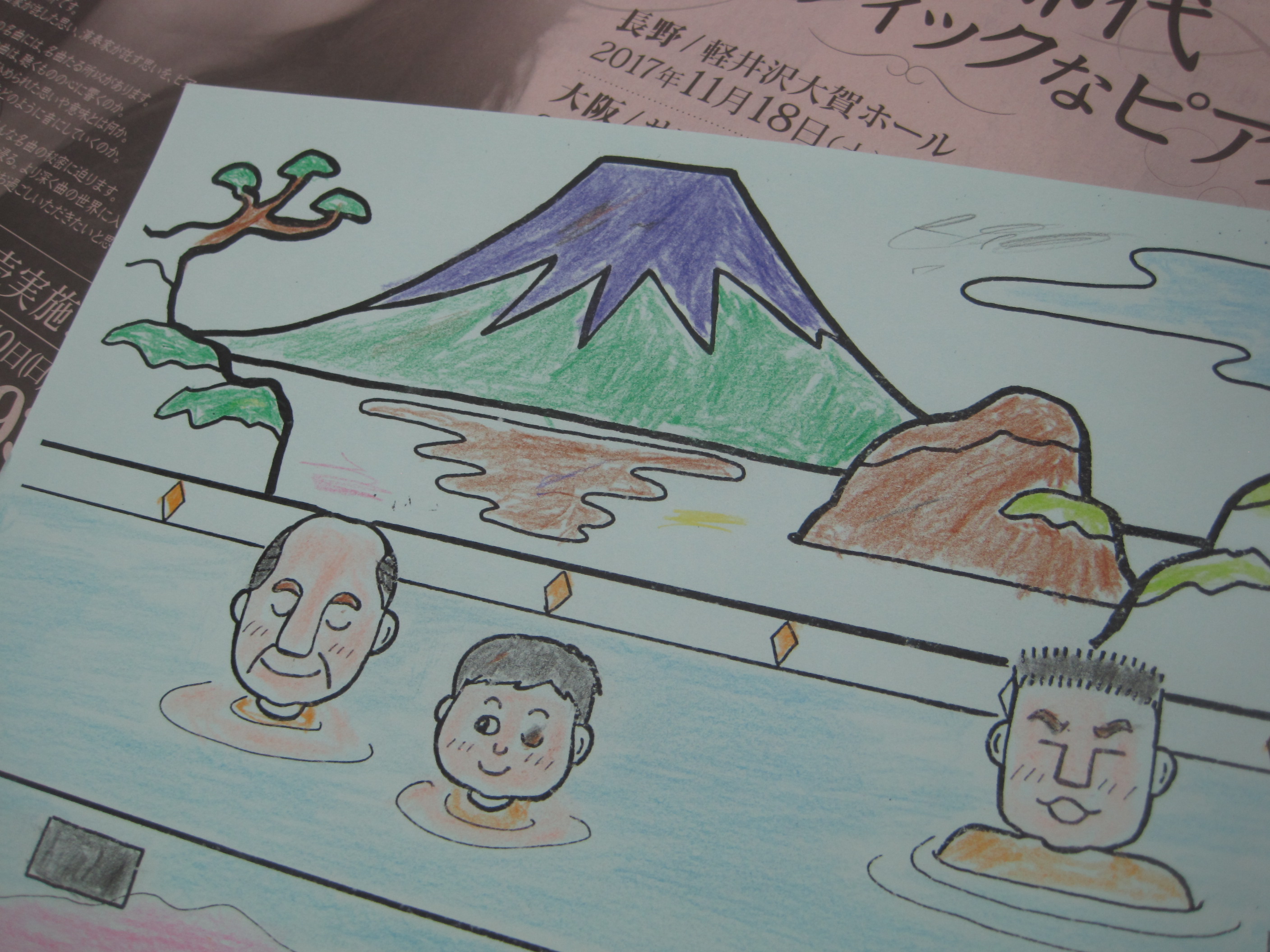 おじいちゃんと孫ちゃんが、仲良くお湯に浸かっているという、なんとも暖か味あるイラストになっております。