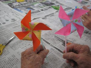 完成した風車を、「ふぅぅ~~~~っ。」と吹くOさん。