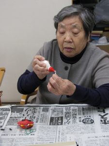 最後は、人形の命、お顔を一つずつ貼り付けていきます。