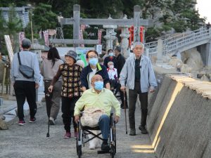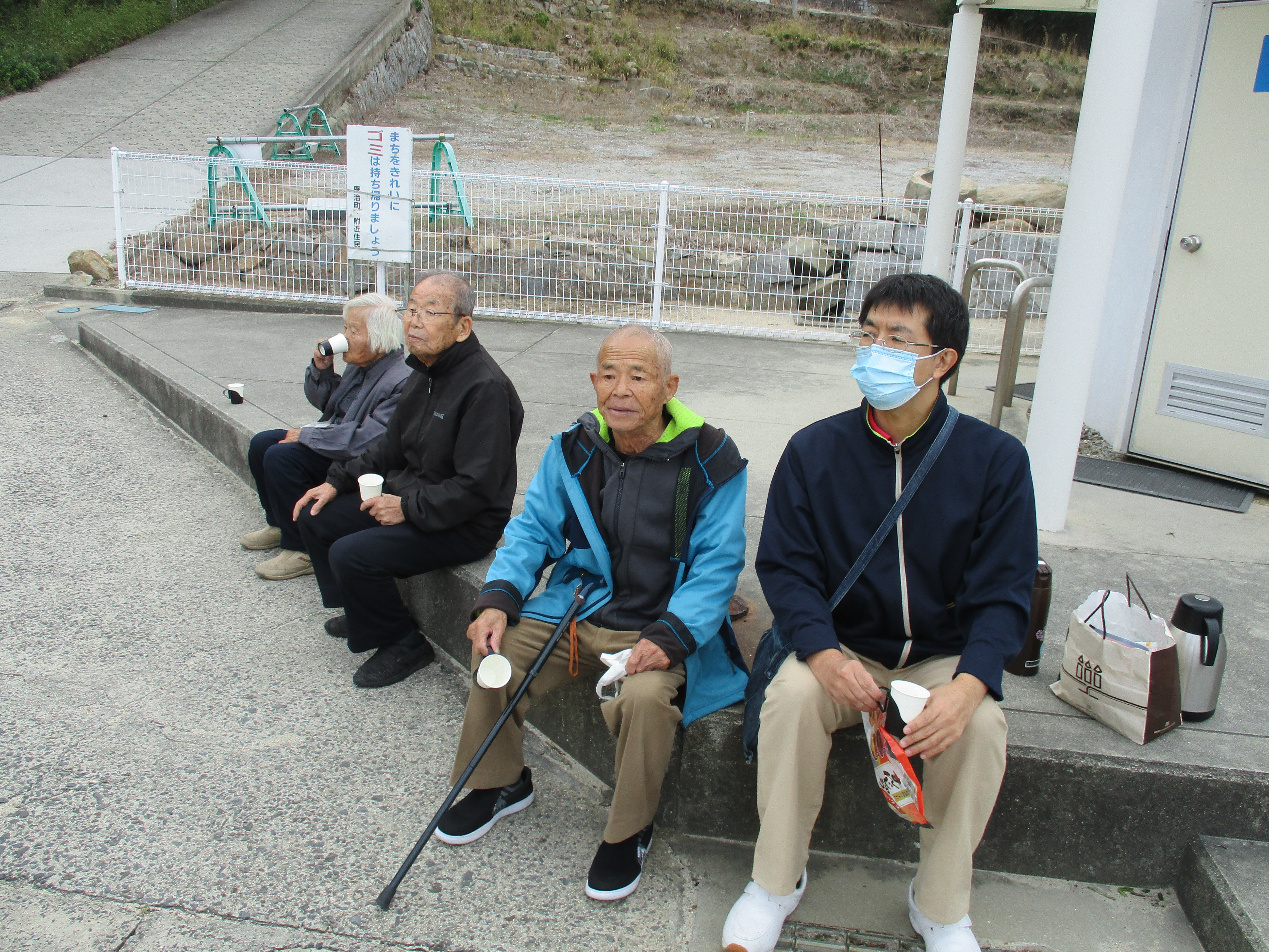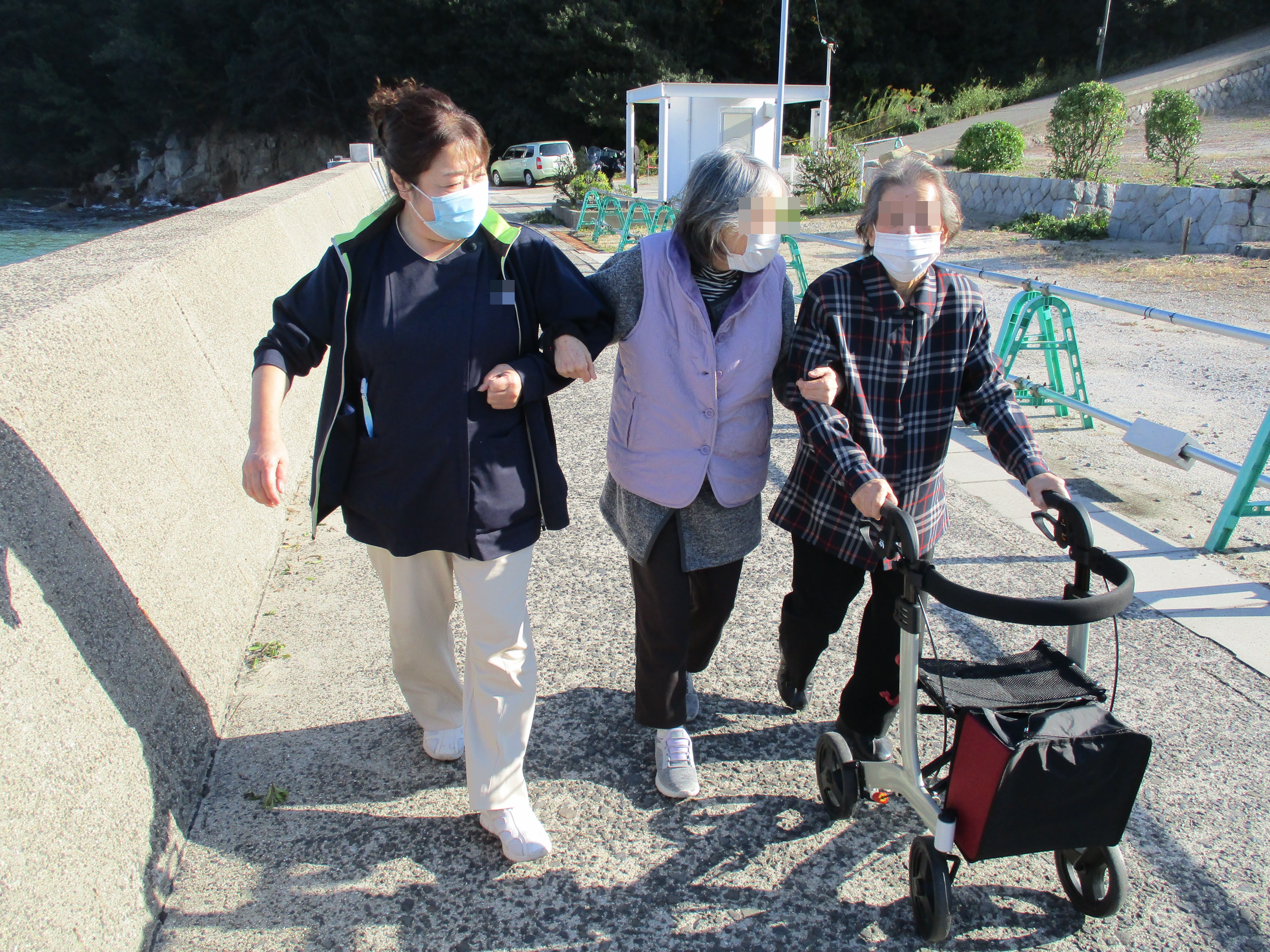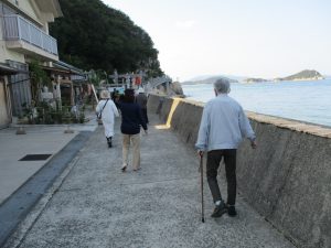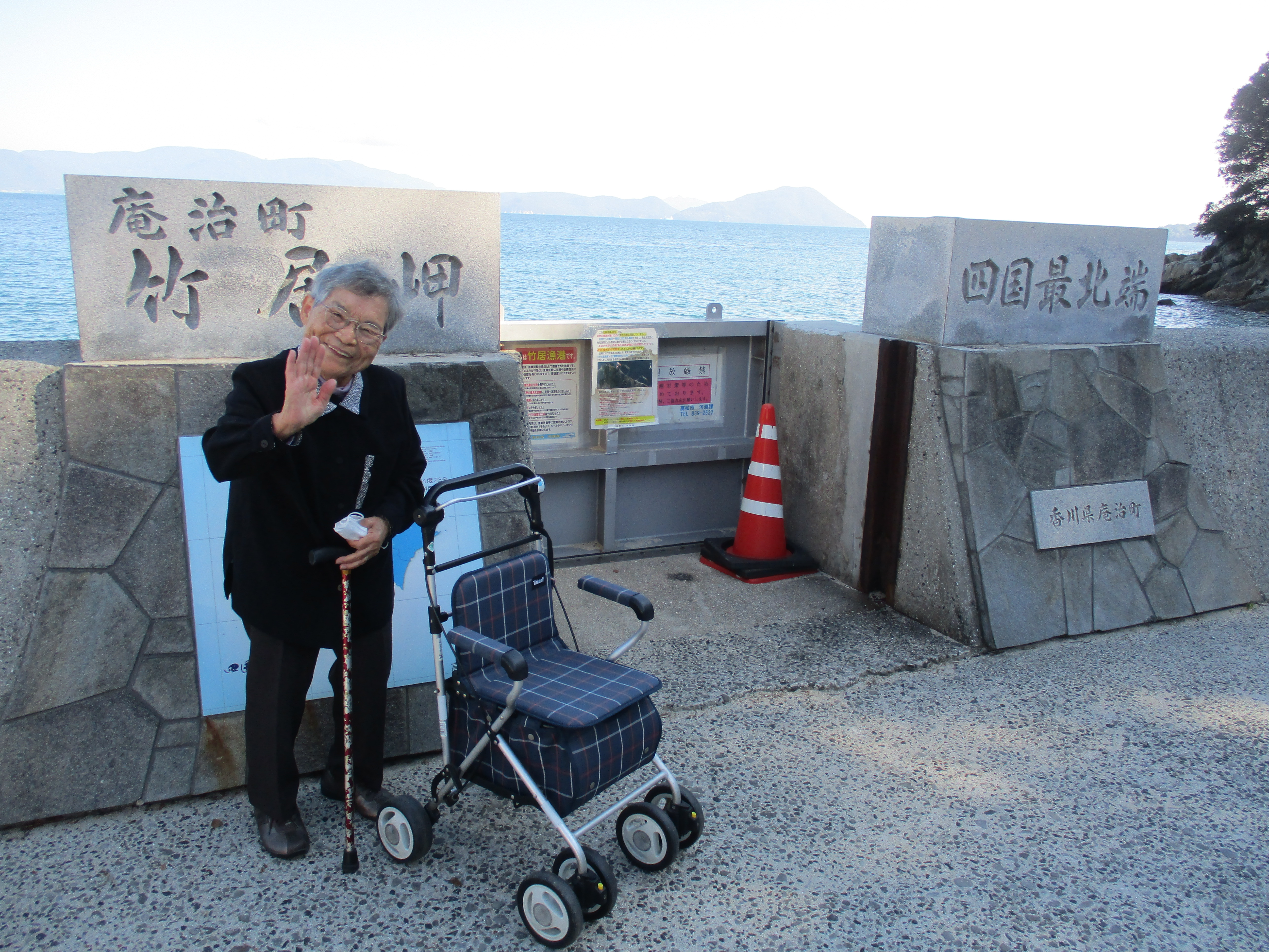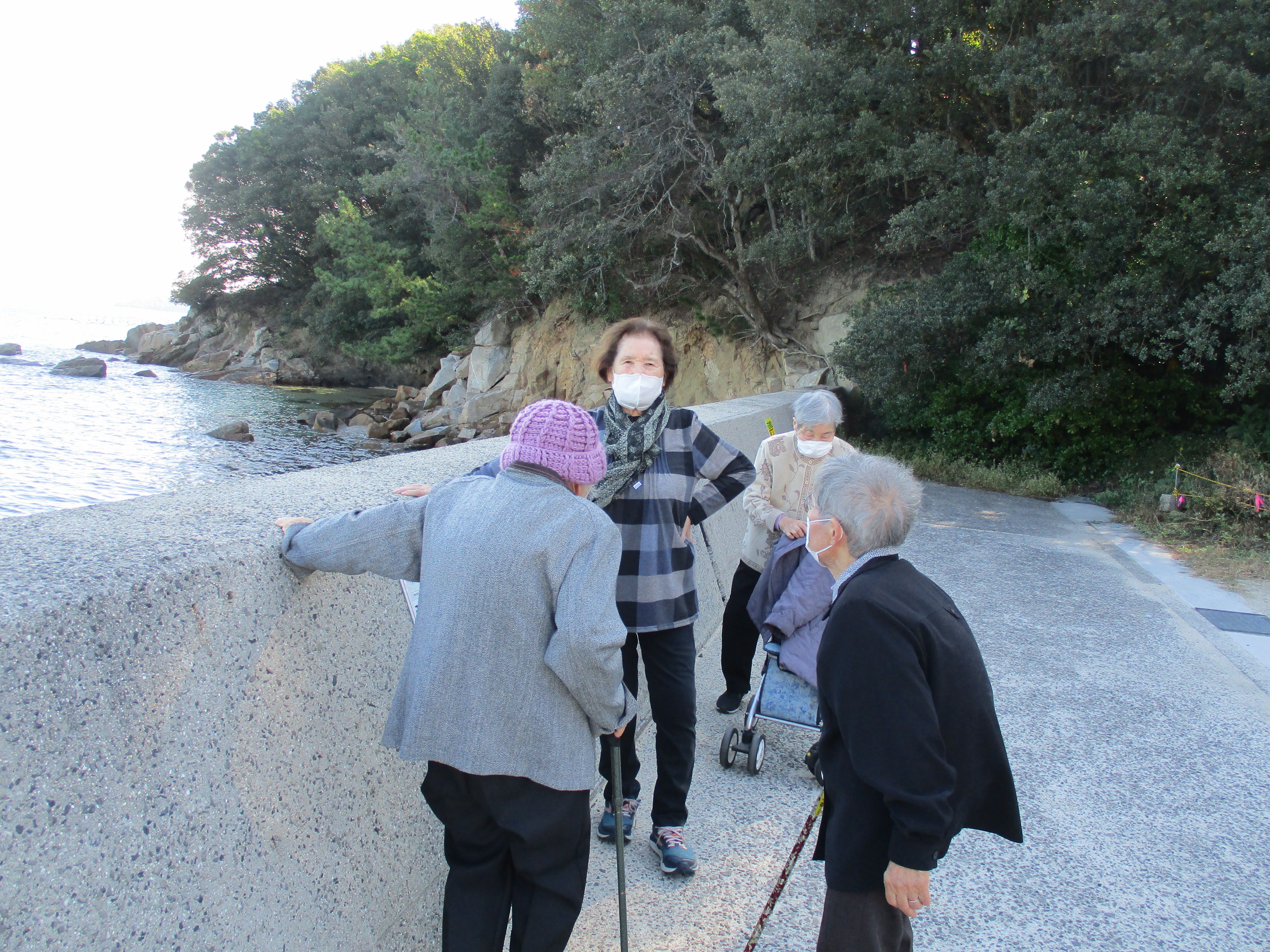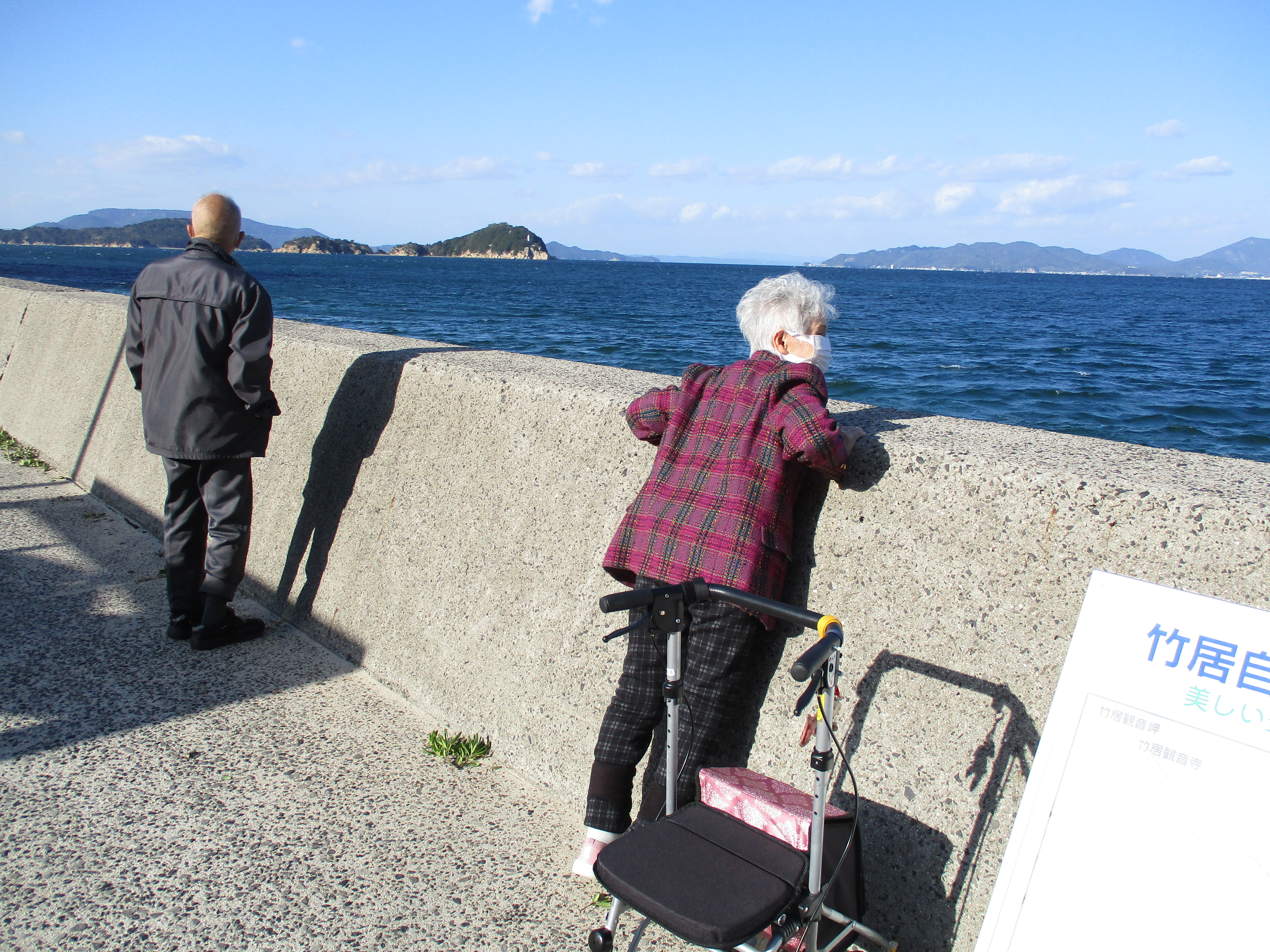 いつも笑顔のNさん、久しぶりに訪れた海に更に笑顔UPで手を振って。。。「気持ちええわぁ~、瀬戸内海、落ち着くわ~。」
