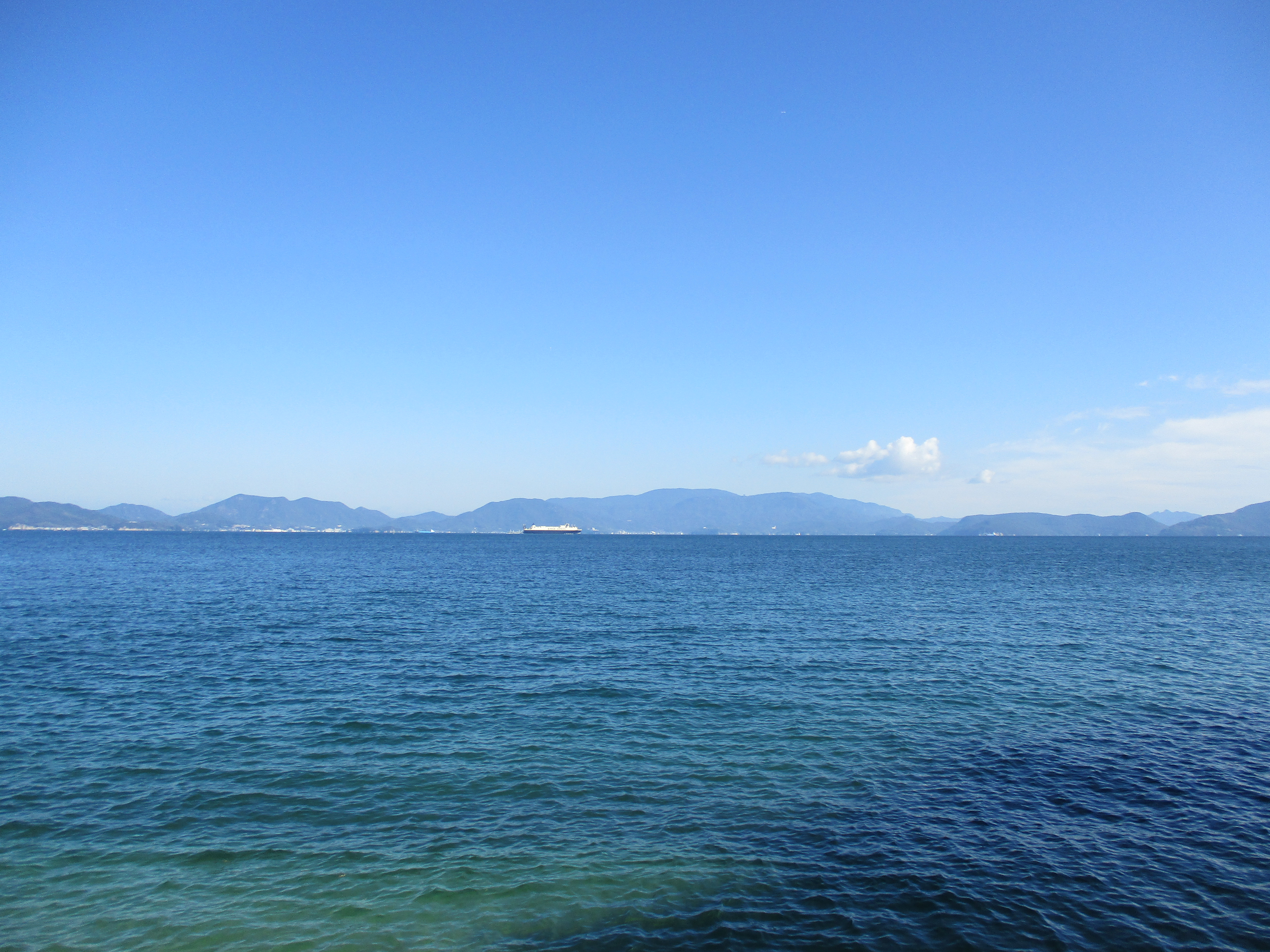 穏やかな海の向こうに見えるのは小豆島です。