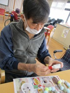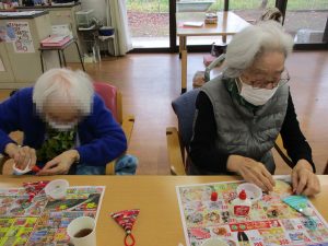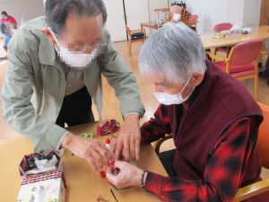 先に作り終えたご利用者が、ちょっとしたコツを伝授したりとご利用者同士の友情も芽生えて。。。