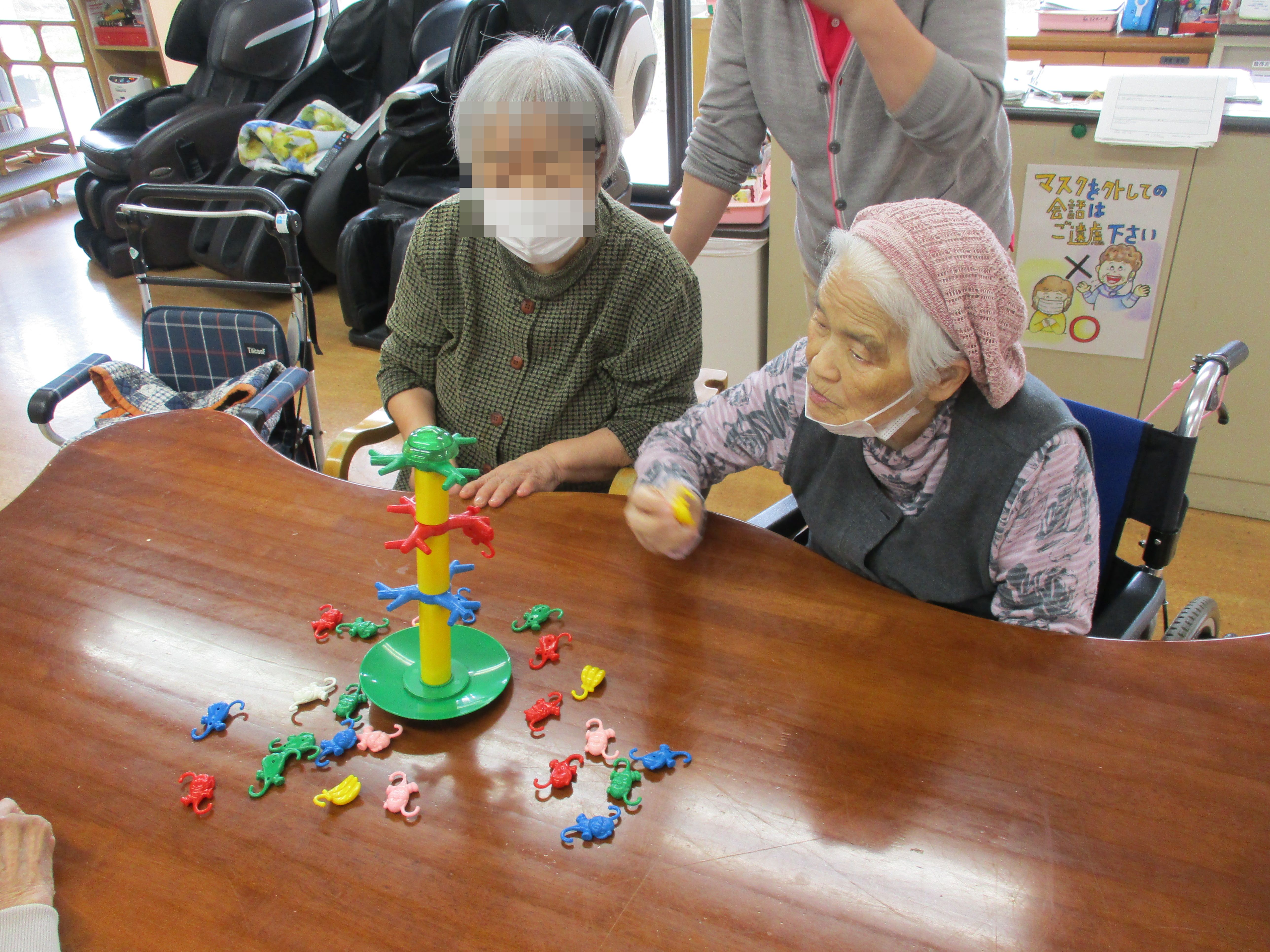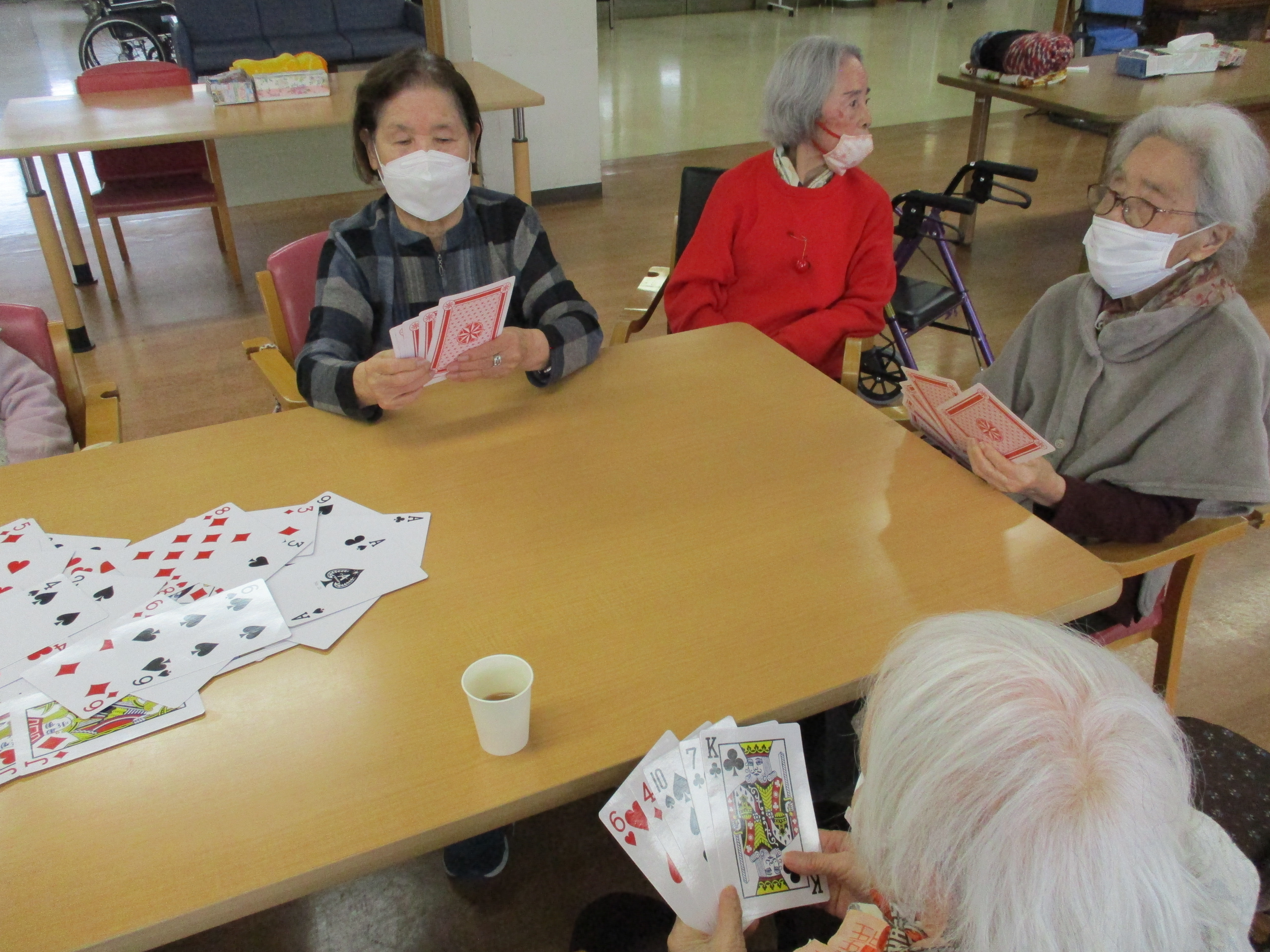 こちらは、巨大トランプで「ババ抜き」を楽しんでらっしゃるようですっ。