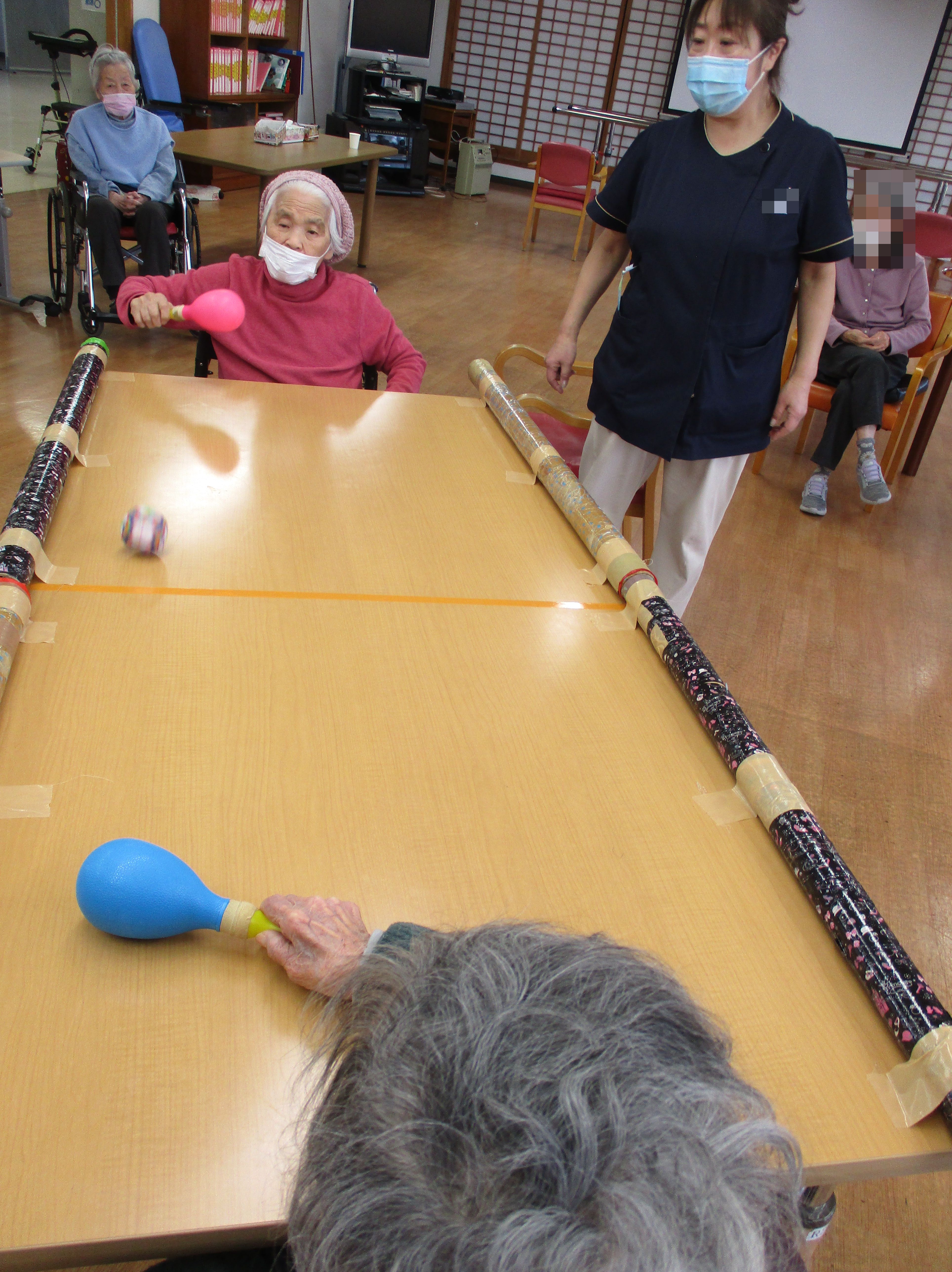 本日、白熱戦間違いなしの「マラカステニス」ですっ♪ マラカスをラケットに、テーブルテニスを楽しみましょう~っ。