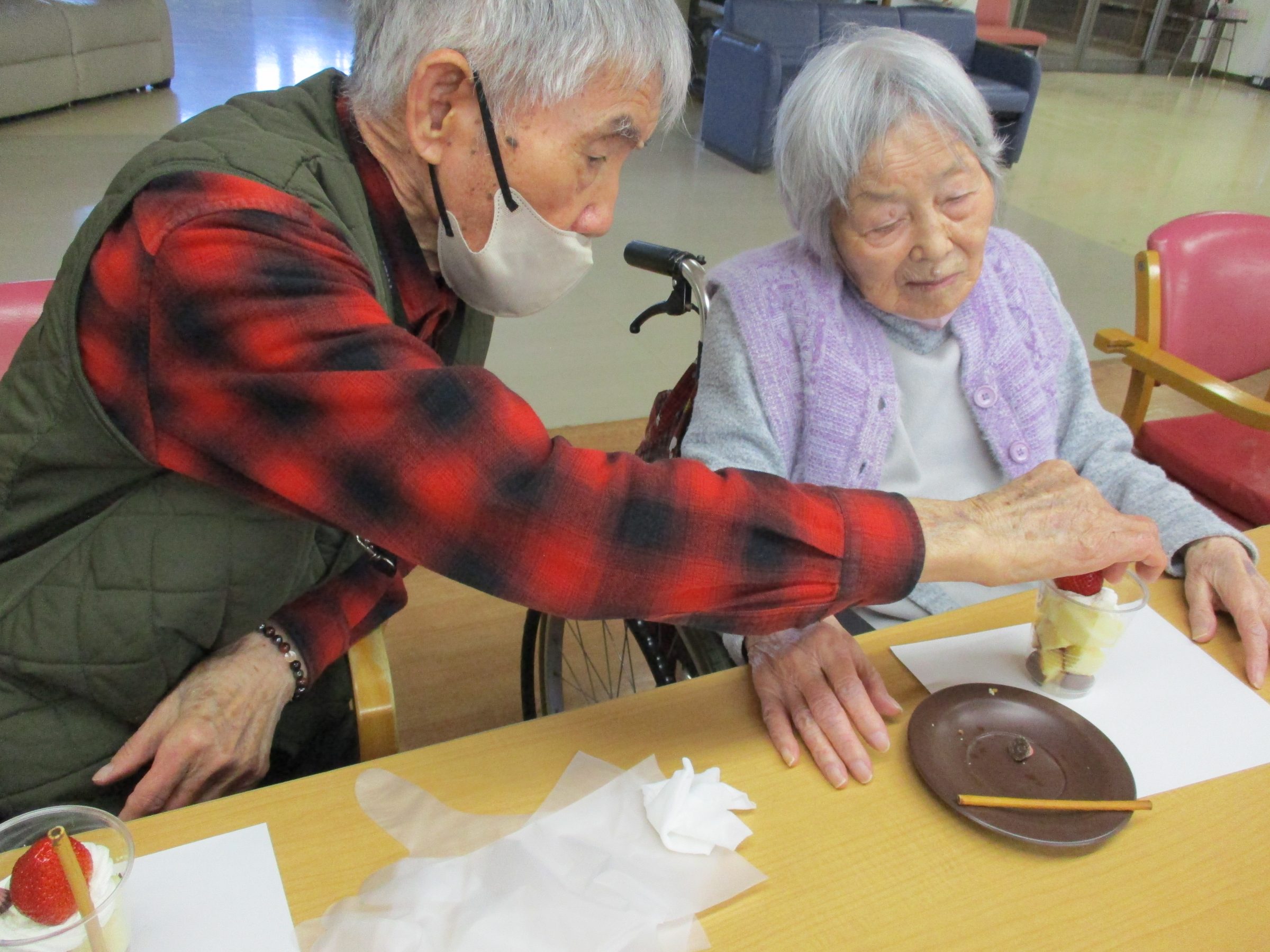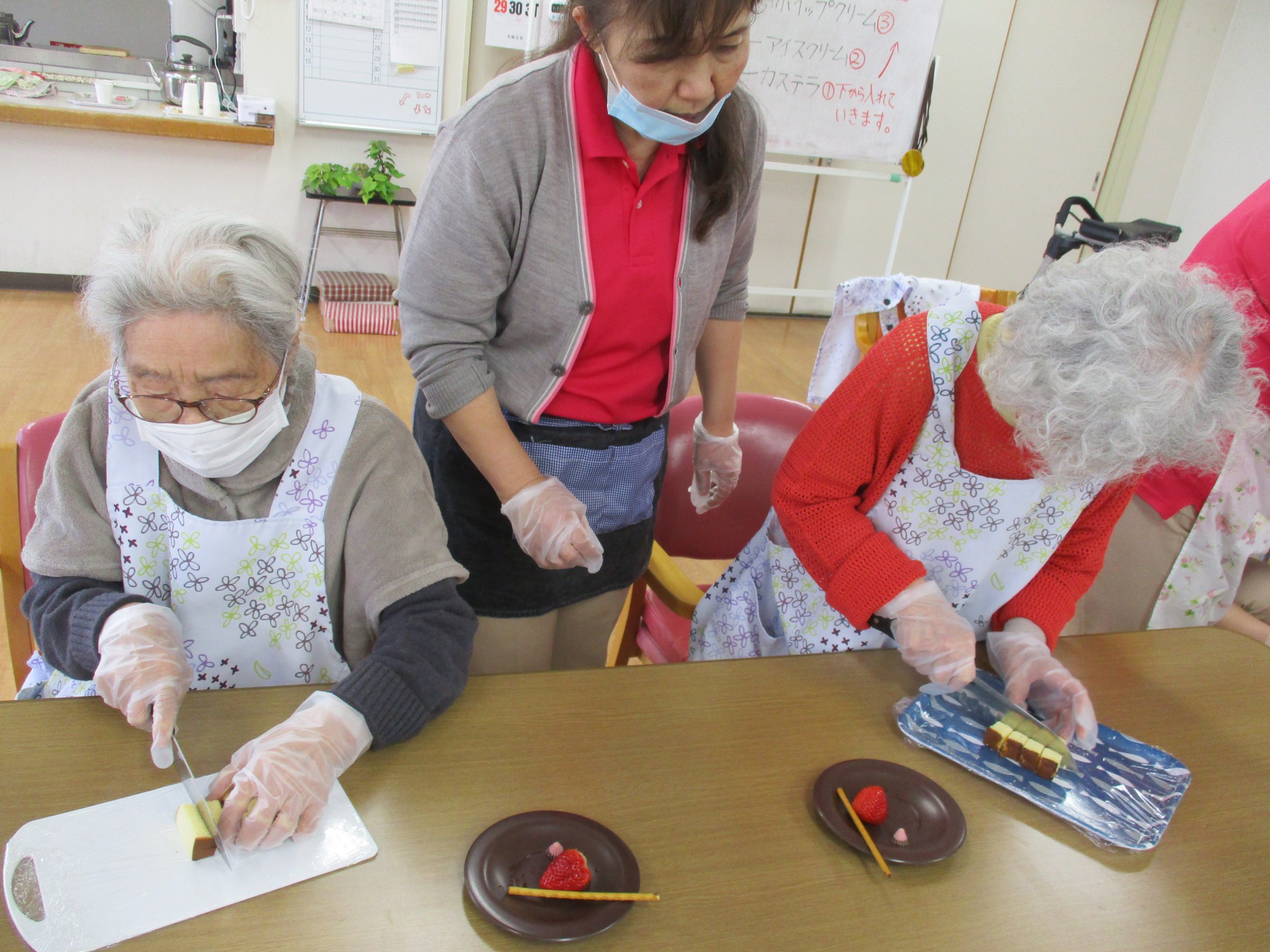 そして、切ったカステラをご自分のお皿に乗せて・・・。第一段階終了ですっ。