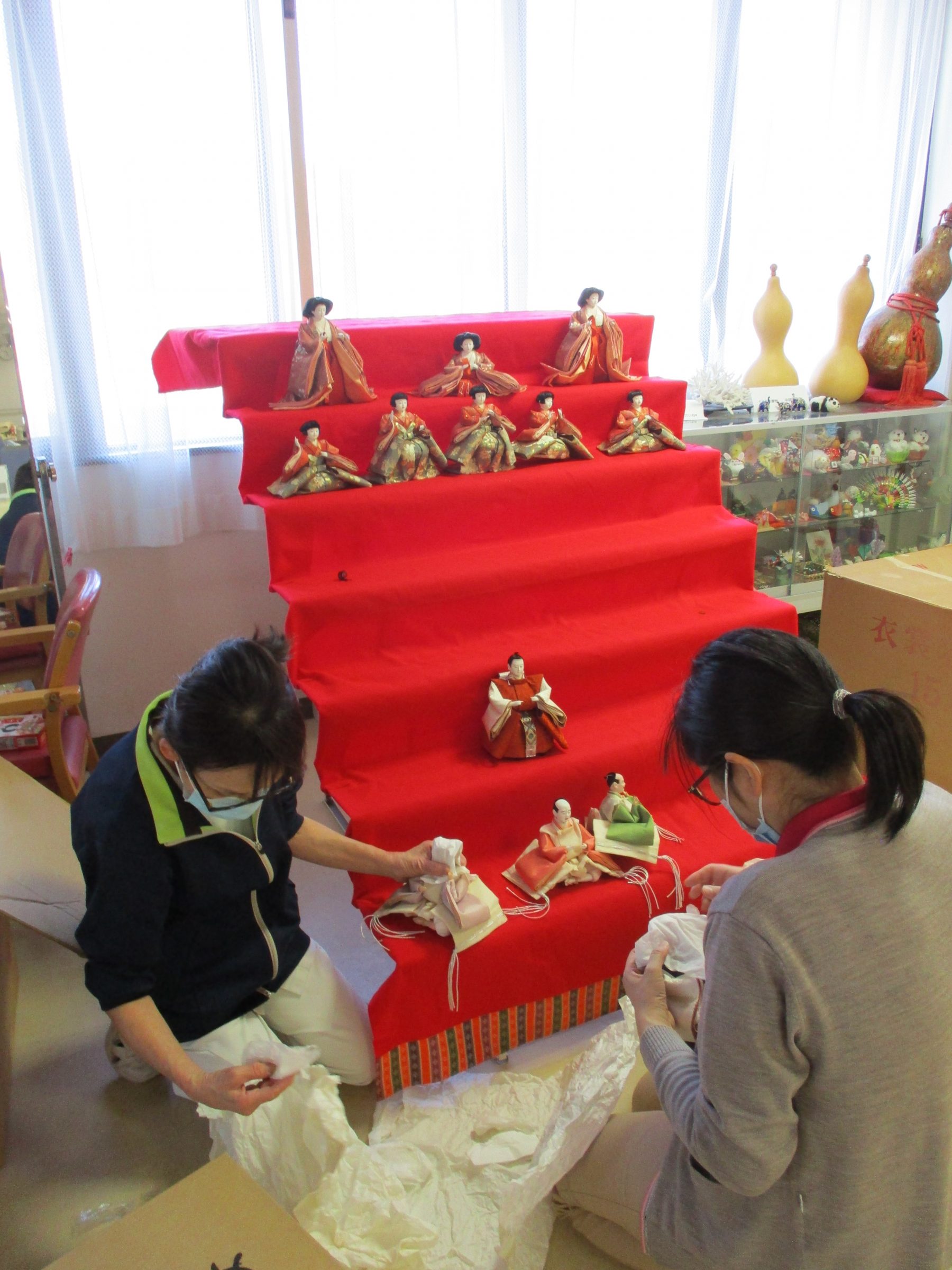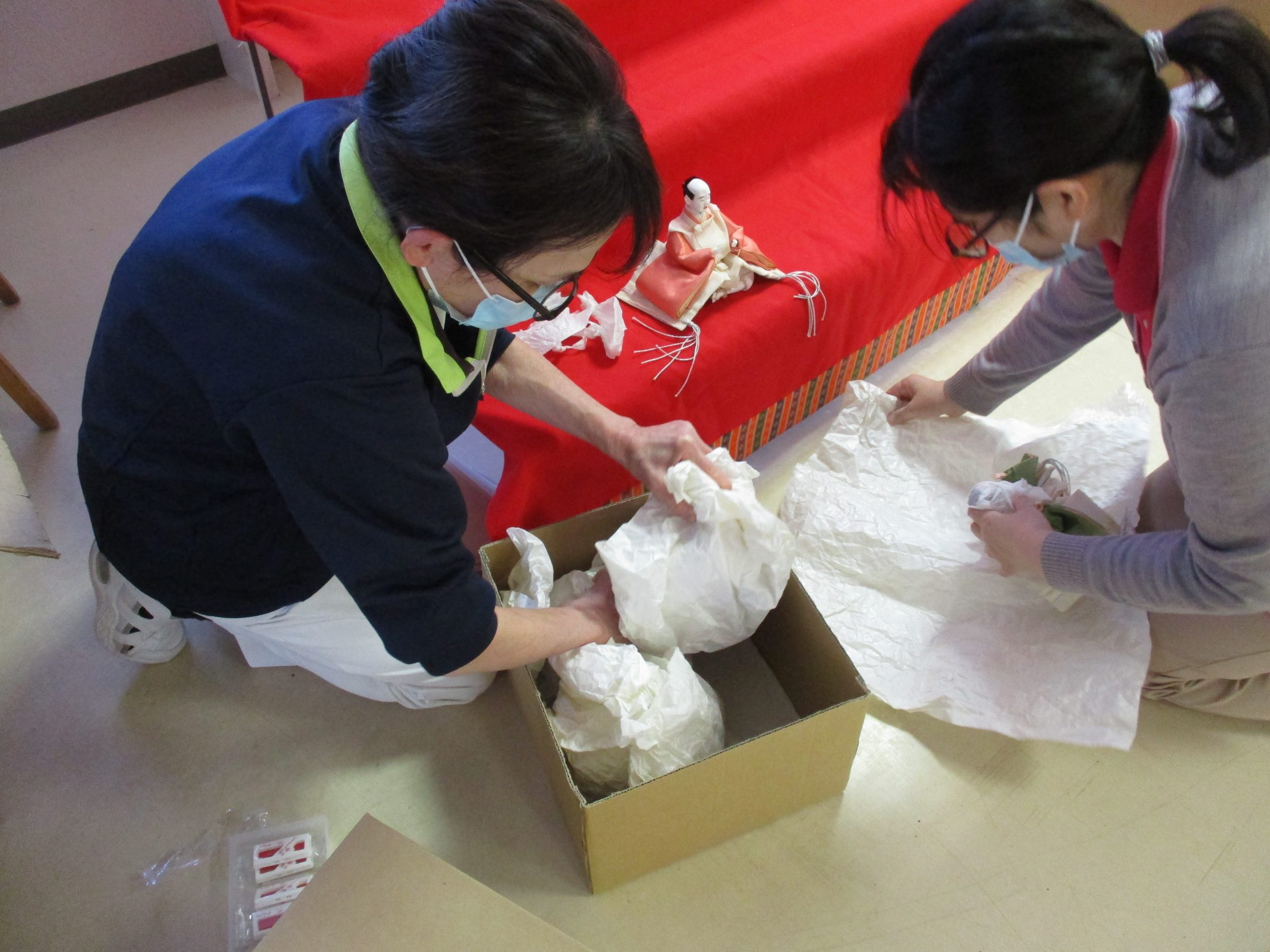 お雛様のお片付け中でした~っ、丁寧に和紙で包んで、、