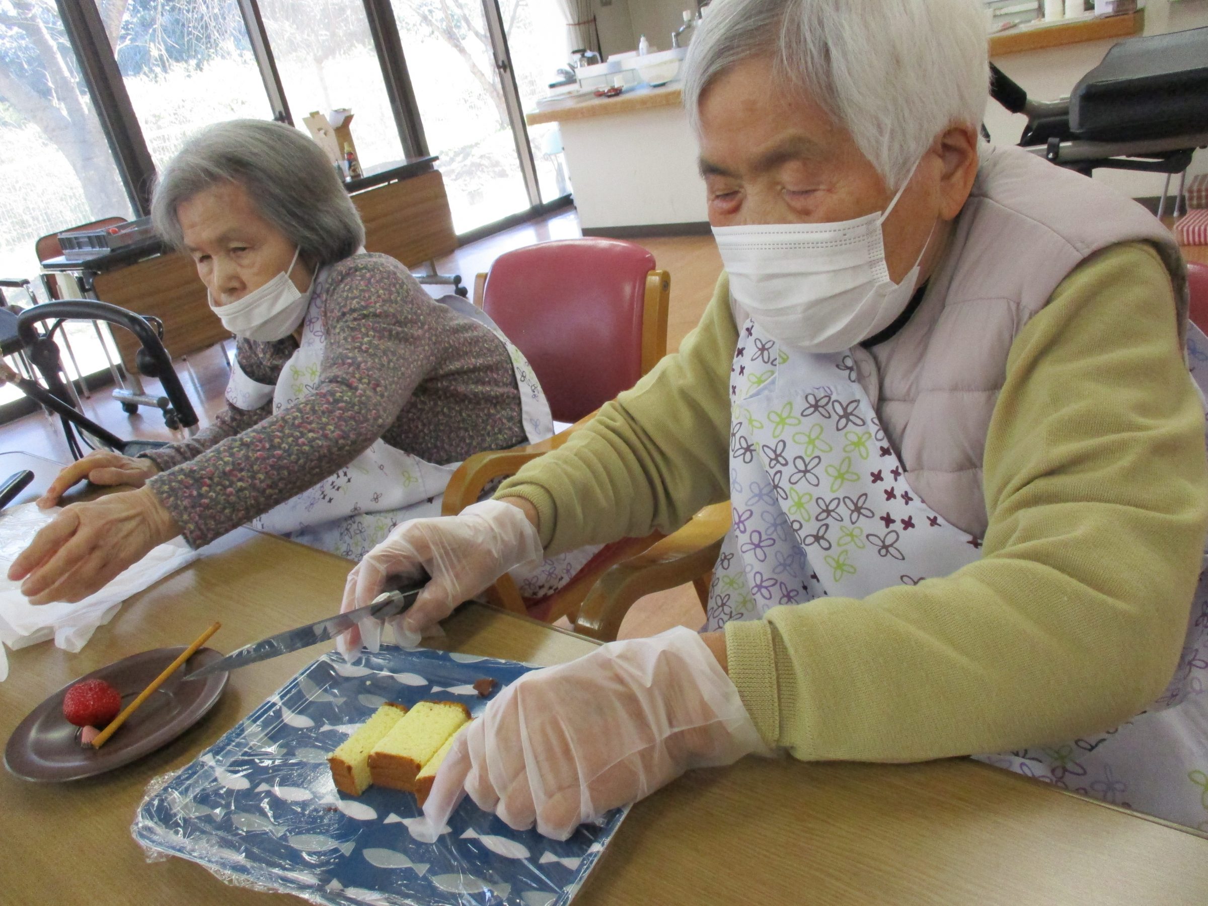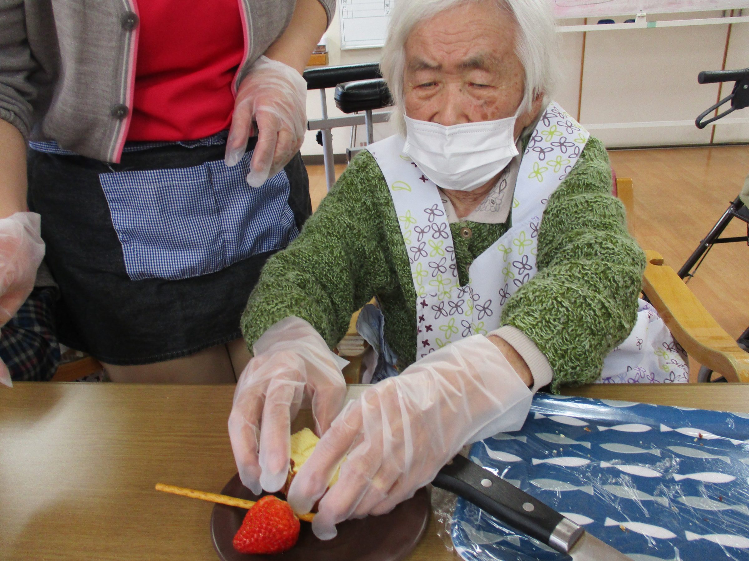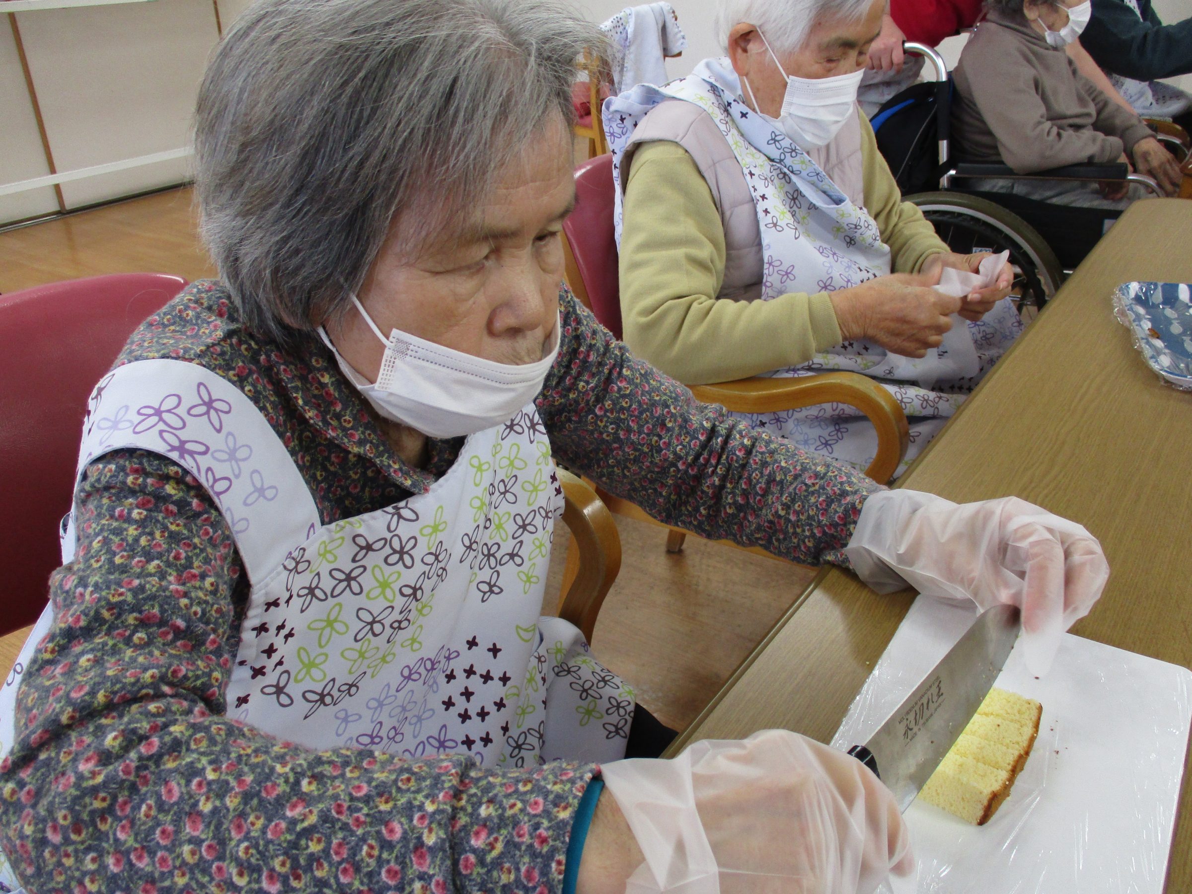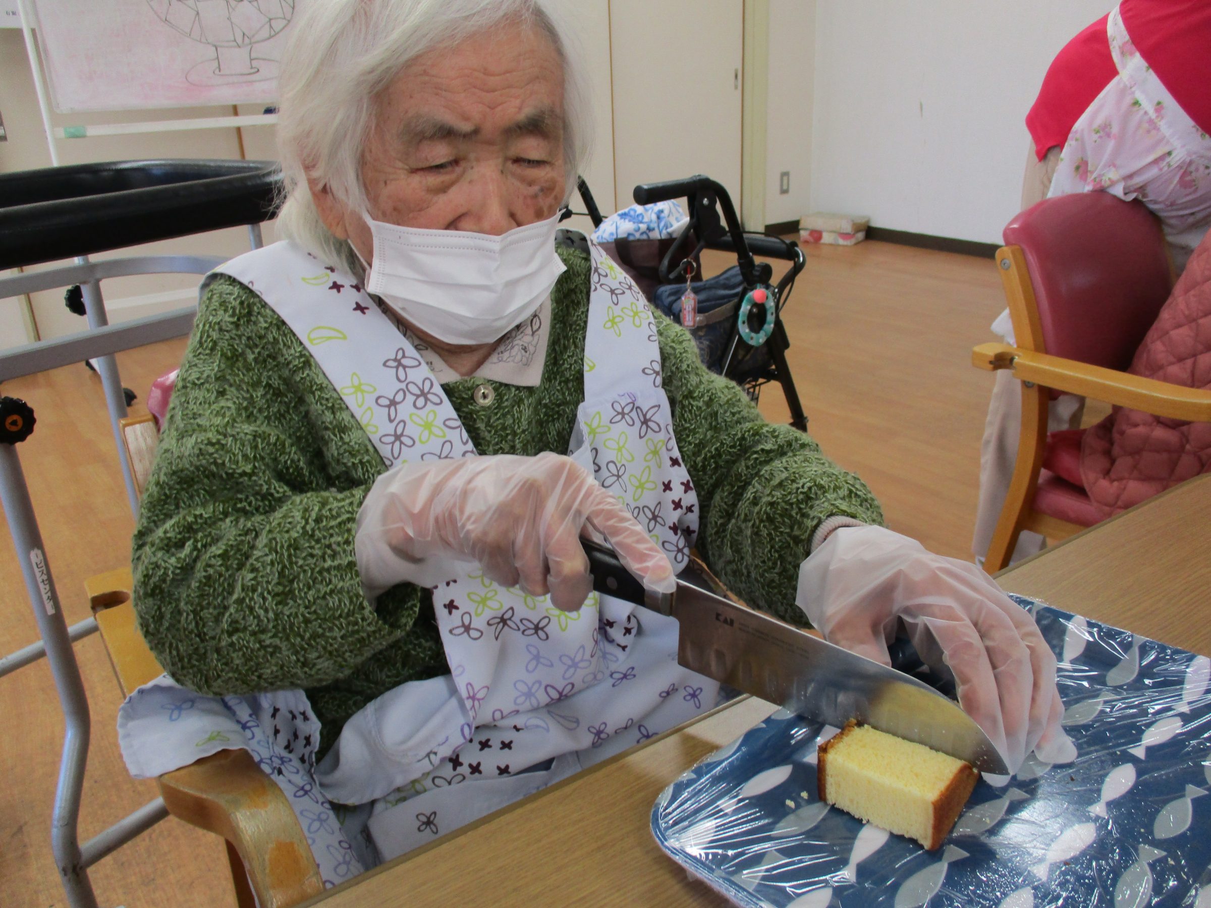 「久しぶりに包丁を握った。」と話すHさんですが、上手に切っておられます。