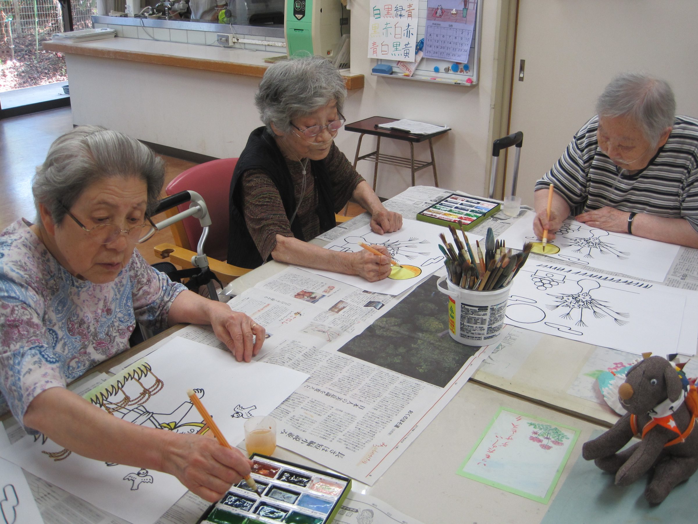 趣味活動は、しっとりと、゛秋の色塗り゛です。