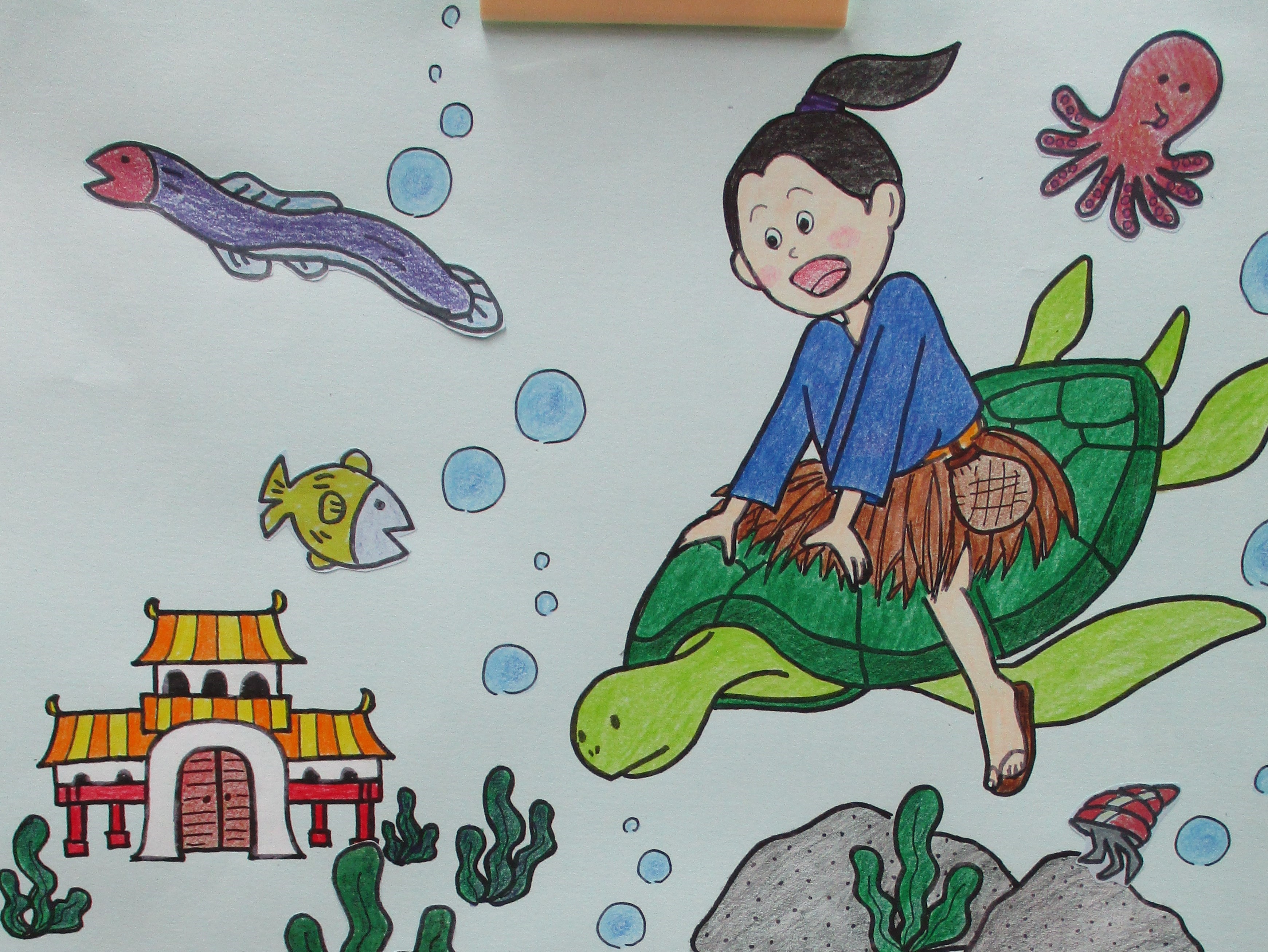 「亀の甲羅って、どんな色かいの。。。」と、皆さんそれぞれにイメージを膨らませて、ご自分の色を塗っていきます。
